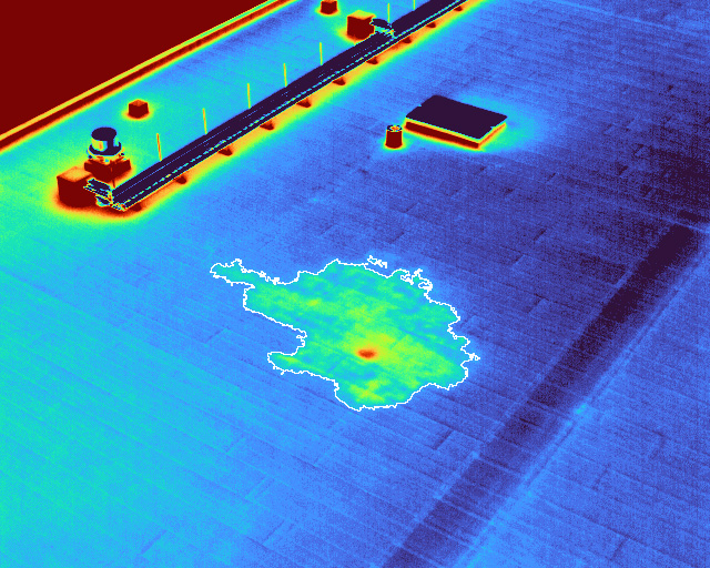 SOPSCAN - inspekcja oraz kontrola stanu dachów płaskich z powietrza za pomocą kamery termicznej, której celem jest identyfikacja oraz precyzyjne określenie obszarów gdzie występują mostki termiczne (brak ciągłości izolacji termicznej) oraz zawilgocenia w izolacji (nieszczelna hydroizolacja).