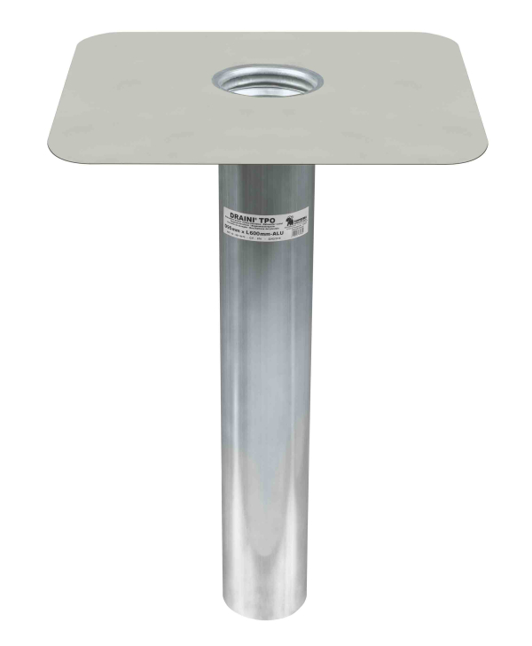 DRAINI TPO jest grawitacyjnym wpustem dachowym do odprowadzania wody. Kołnierz przyłączeniowy jest wykonany z membrany TPO, membrana zbrojona siatką z włókna szklanego, a rura jest wykonana z aluminium. Oba elementy są trwale i szczelnie zespolone.